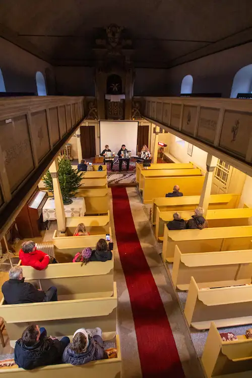 Die historische St. Katharinen Kirche war in diesem Jahr Teil unseres Programms und was für eine Bereicherung! Das Weihnachtskino in diesem besonderen Ambiente, die weihnachtliche Akkordion Musik zwischen den alten Mauern, das hat viele Besucher*innen tief berührt. Die Kirchengemeinde ist auf uns zugekommen und hat ihre Türen geöffnet. Es war ein Geschenk, diesen besonderen Ort mit Leben füllen zu dürfen.