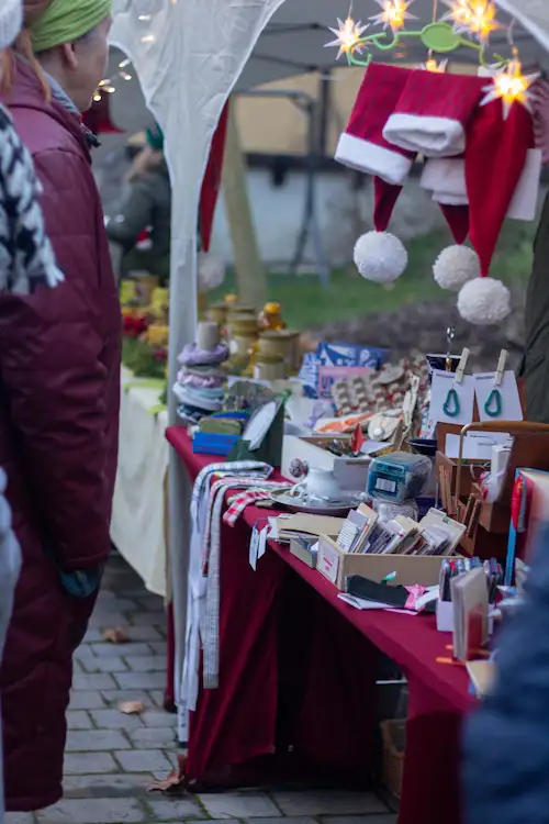 Regionale Imkerei, handgezogene Kerzen, Kunsthandwerk, Töpferworkshops, Plätzchenwerkstatt, Laternen selber basteln, mit Krimzkrams – die Vielfalt der Angebote hat den Weihnachtsgarten lebendig gemacht. Dazu die kulinarischen Klassiker: Waffeln, Glühwein, Kaffee und Kuchen, Stockbrot am Feuer. All das hat diesen Tag zu einem Fest für alle Sinne gemacht.