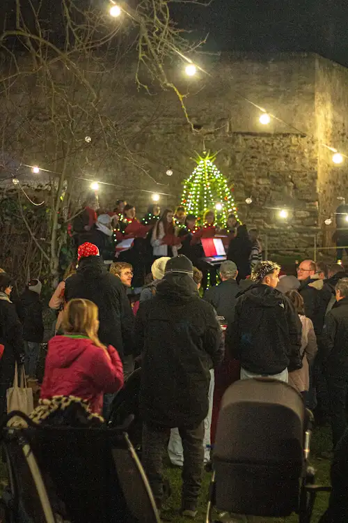 Der Laternenumzug zur Freiwilligen Feuerwehr und das gemeinsame Christbaumsetzen waren für viele der Höhepunkt des Tages. Als unzählige Laternen und Fackeln durch die Straßen zogen und dann gemeinsam der Baum aufgestellt wurde – das war Gemeinschaft zum Anfassen.
