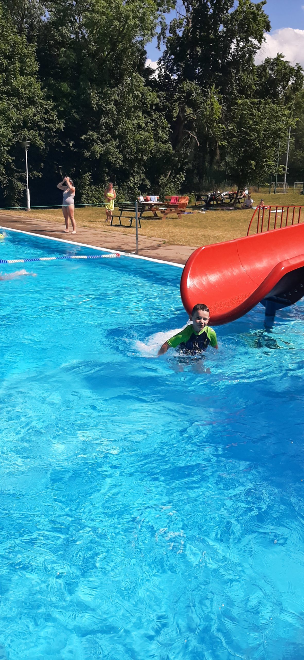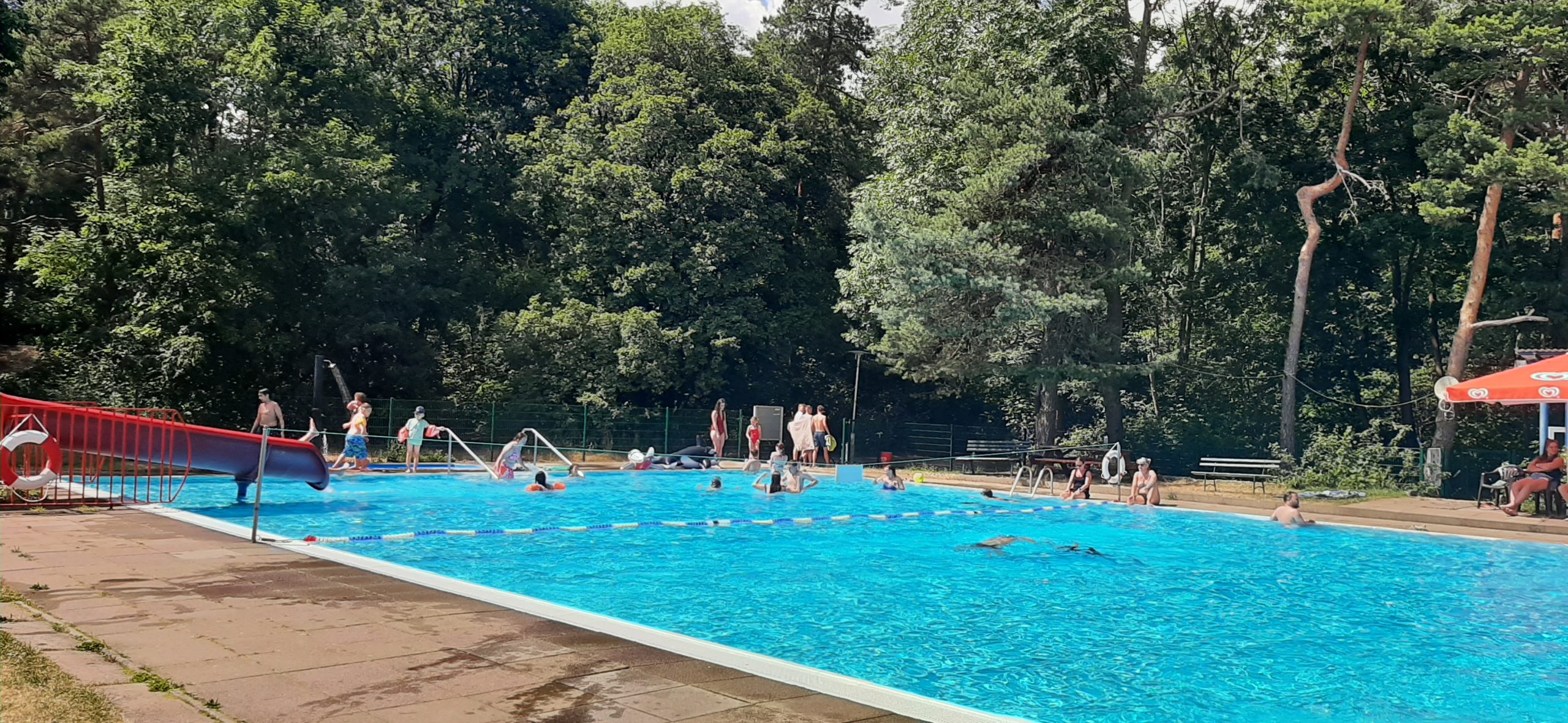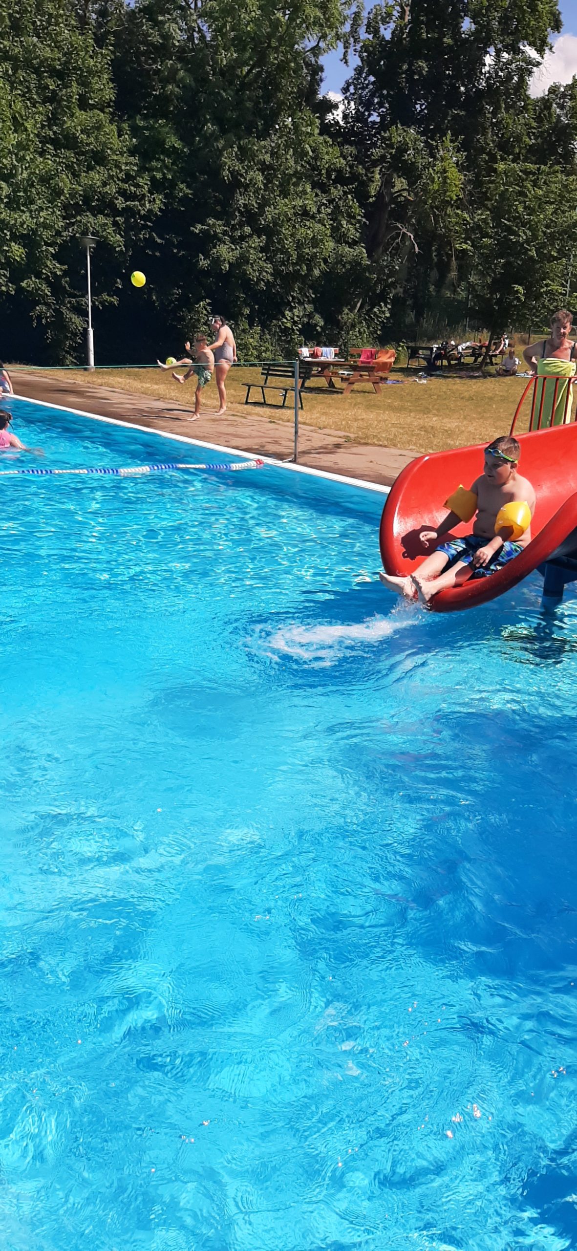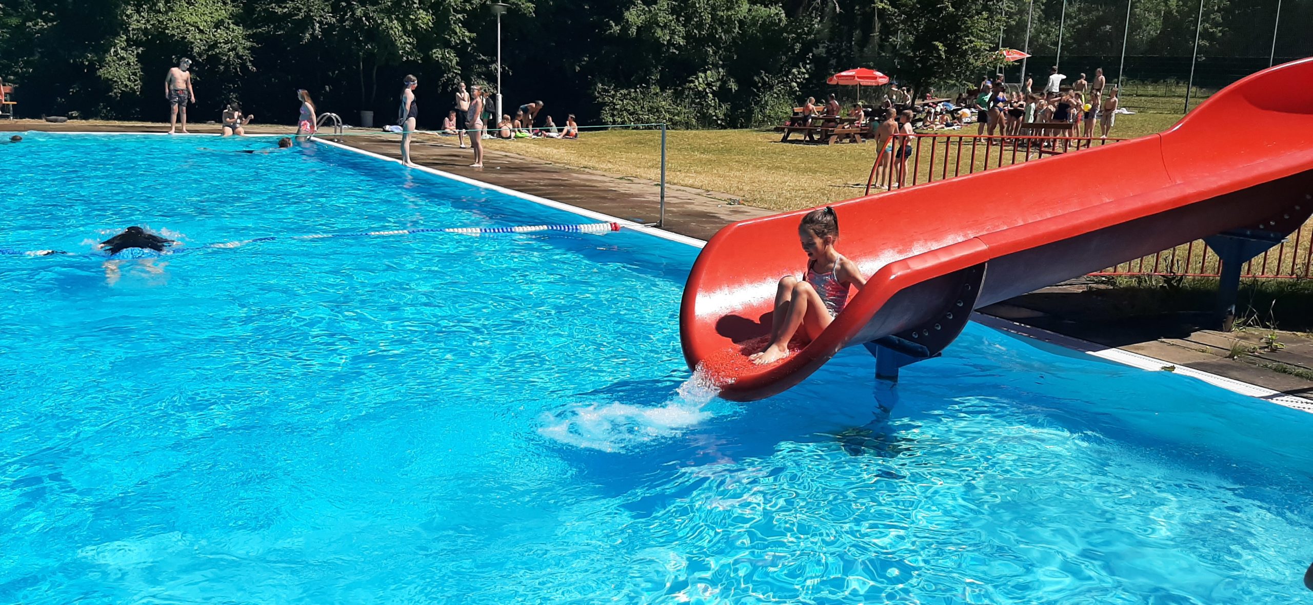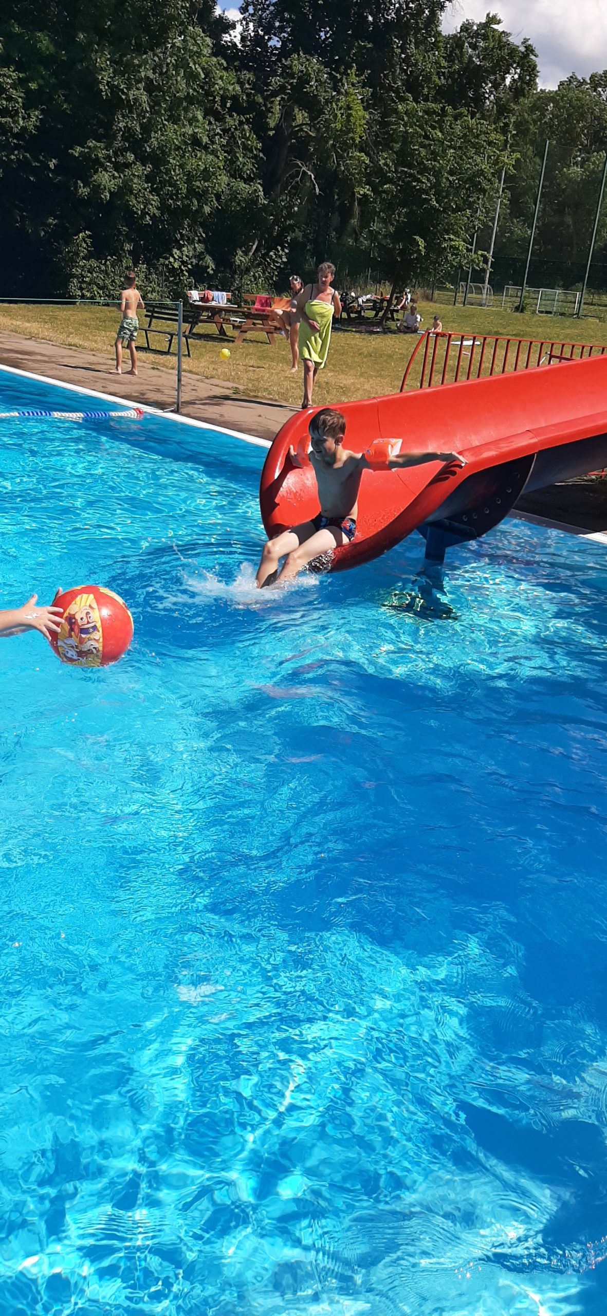 Nun liegt ein weiterer ereignisreicher und spannender Tag im KIEZ Feuerkuppe hinter uns. Während ein Teil der Kinder heute gemeinsam mit den Betreuern den Affenwald in Straußberg besucht hat und dabei allerhand interessante Dinge über die Haltung und Lebensweise dieser niedlichen Tiere erfahren konnte, haben alle anderen Kinder und Betreuer bei hochsommerlichen Temperaturen im Freibad eine kleine Abkühlung gefunden. Dabei wollten alle wissen, wer am schnellsten rutscht, am höchsten singt und am längsten die Luft anhalten kann.