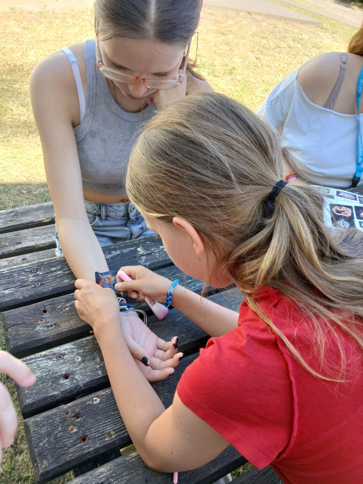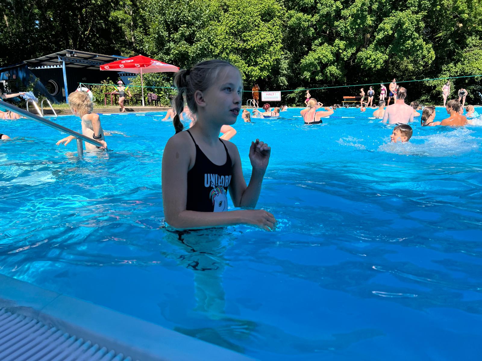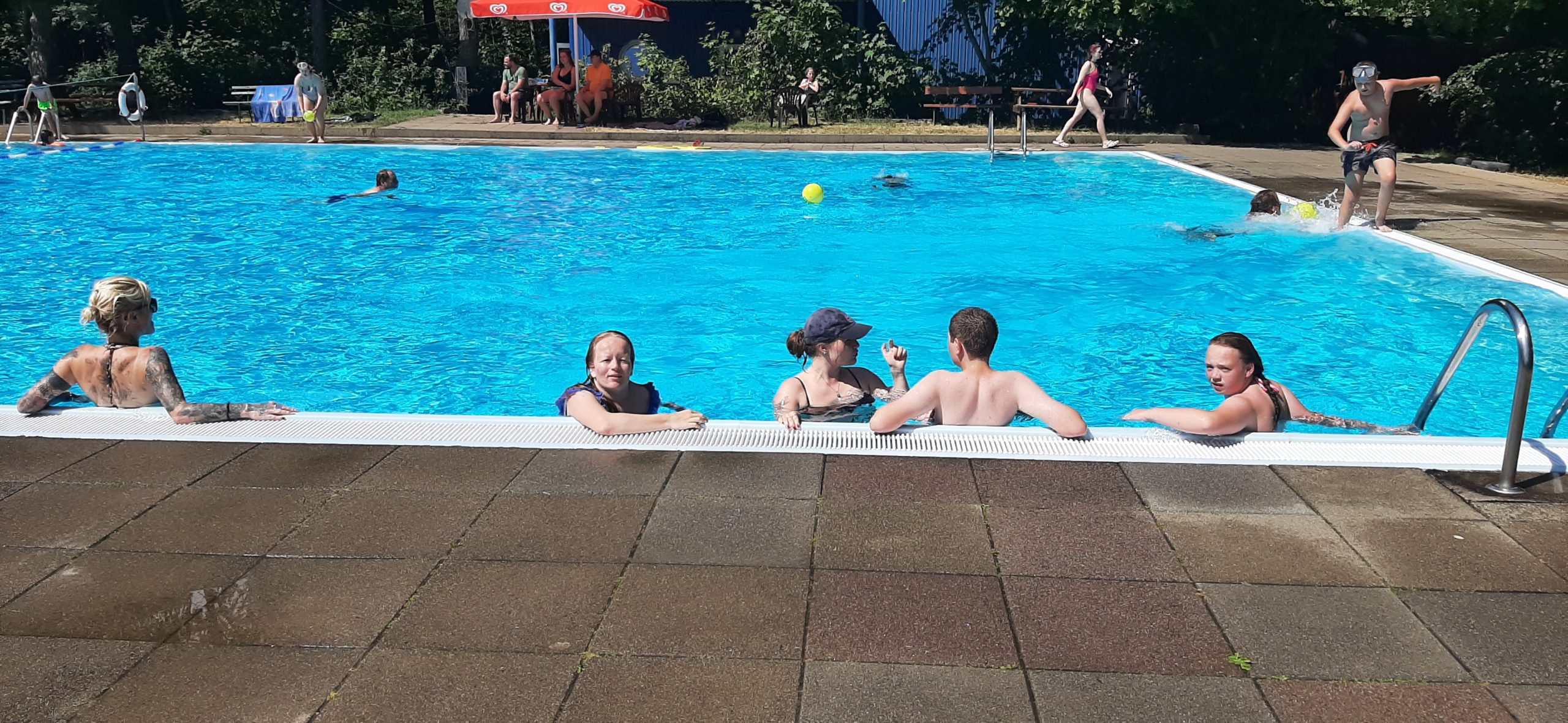 Es liegt ein weiterer spannender und ereignisreicher Tag hinter uns. Wir trotzten den heißen Temperaturen an einem kühlen Plätzchen im Schatten. Wir bastelten und malten, und ließen uns Glitzer-Tattoos machen und kühlten uns im Freibad ab.