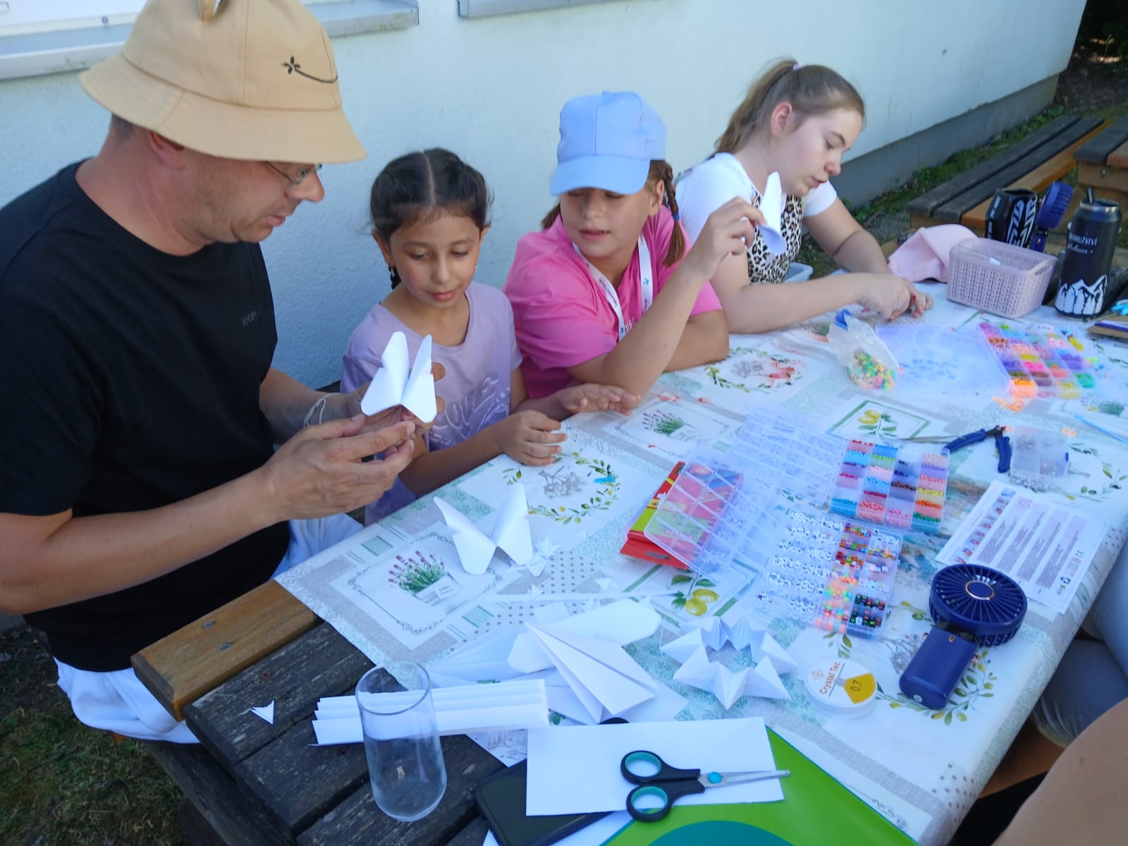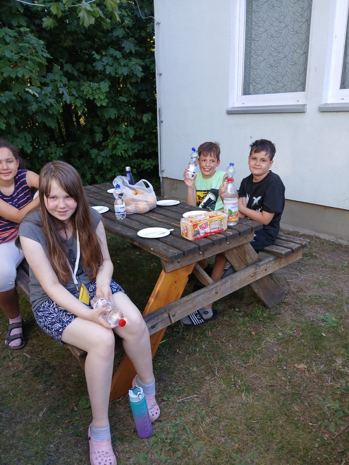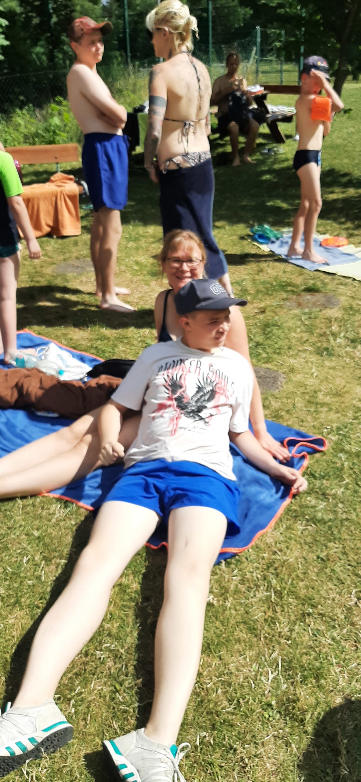 Es liegt ein weiterer spannender und ereignisreicher Tag hinter uns. Wir trotzten den heißen Temperaturen an einem kühlen Plätzchen im Schatten. Wir bastelten und malten, und ließen uns Glitzer-Tattoos machen und kühlten uns im Freibad ab.