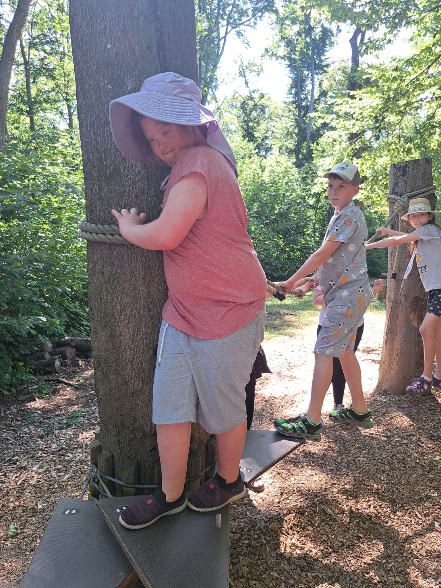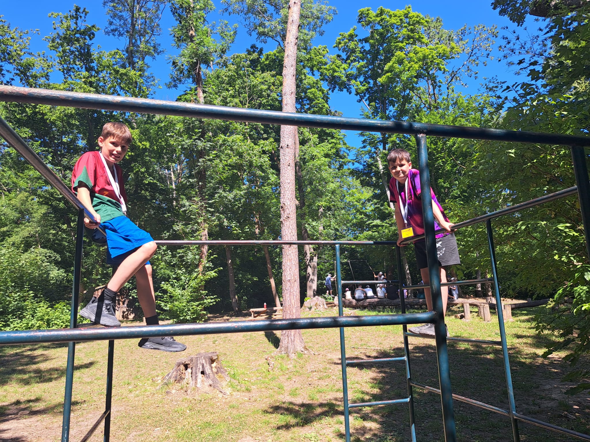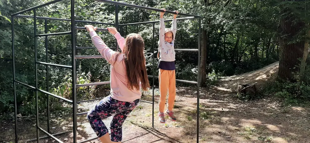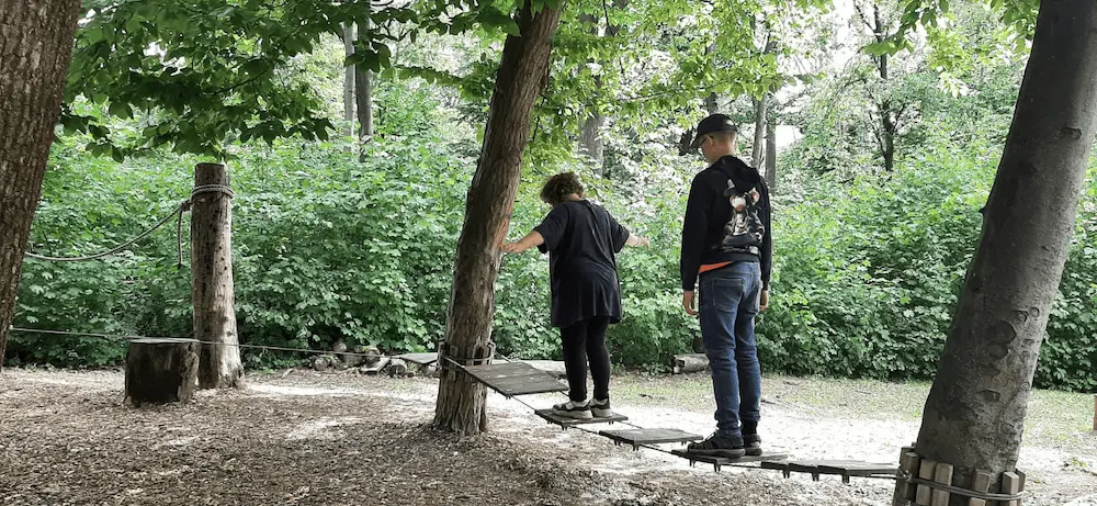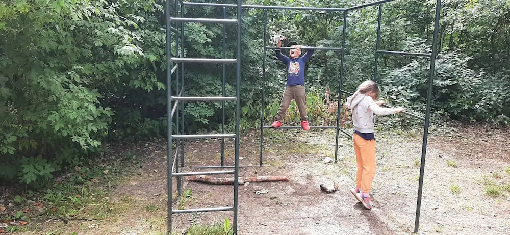 Nachdem wir heute unsere Koffer für die Rückreise gepackt haben, haben wir unseren letzten Tag noch einmal so richtig genossen. Das etwas kühlere Wetter am Vormittag nutzten wir zur Erforschung des Waldspielplatzes, auf dem wir uns bis zum Mittagessen auspowerten.